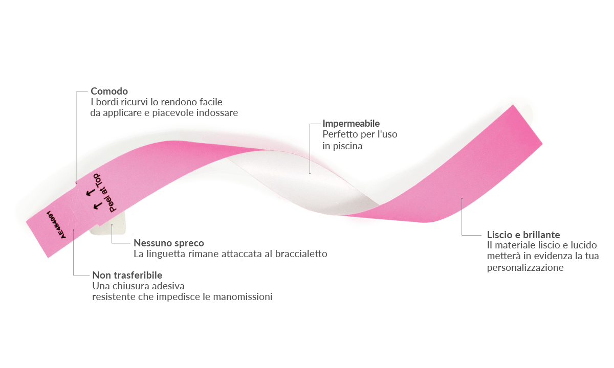 Il nostro SecurBand ti permetterà così di evitare frodi all'ingresso del tuo locale. La sua chiusura adesiva si strappa quando provi ad aprire il braccialetto. In questo modo si garantisce che il braccialetto non venga ceduto a nessun altro.